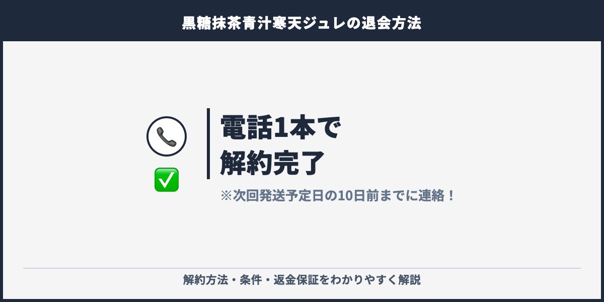 黒糖抹茶青汁寒天ジュレの解約は電話で手続きできます。以下の手順で進めてください。