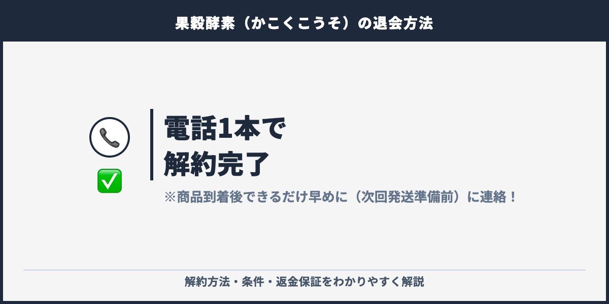 電話で本人確認(注文番号・登録電話番号・住所)を伝えると、その場で解約処理が完了します。電話による強引な引き止めはほぼないため、口頭で「解約したい」と伝えるだけで問題ありません。