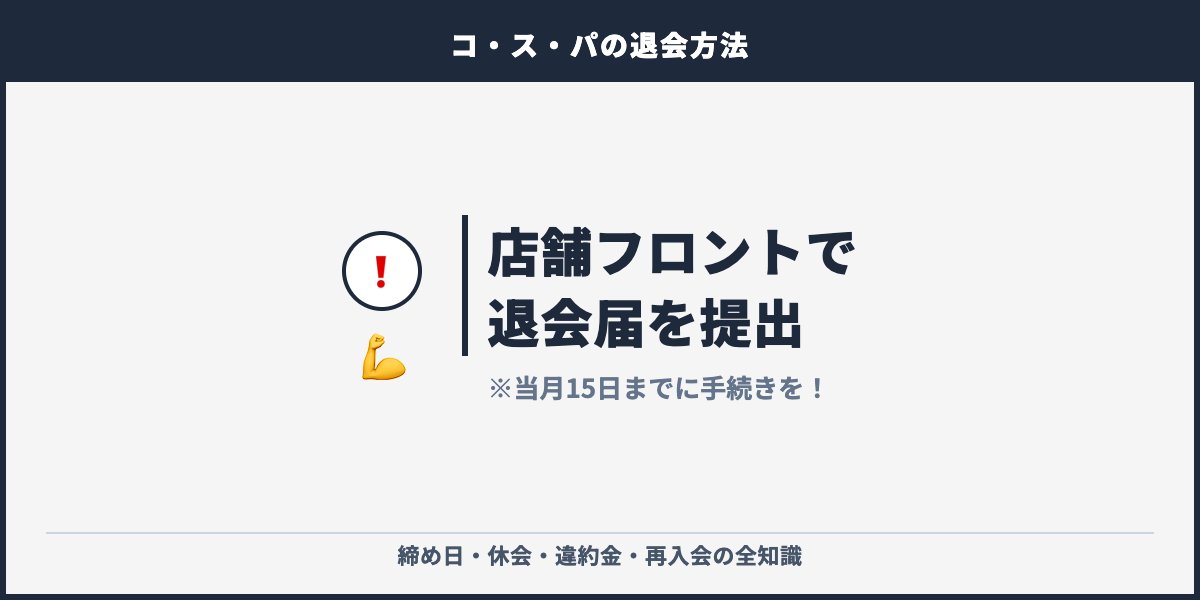 この記事では、コ・ス・パの退会手順・締め日・必要な持ち物・休会制度・違約金・再入会の注意点について、わかりやすくまとめています。