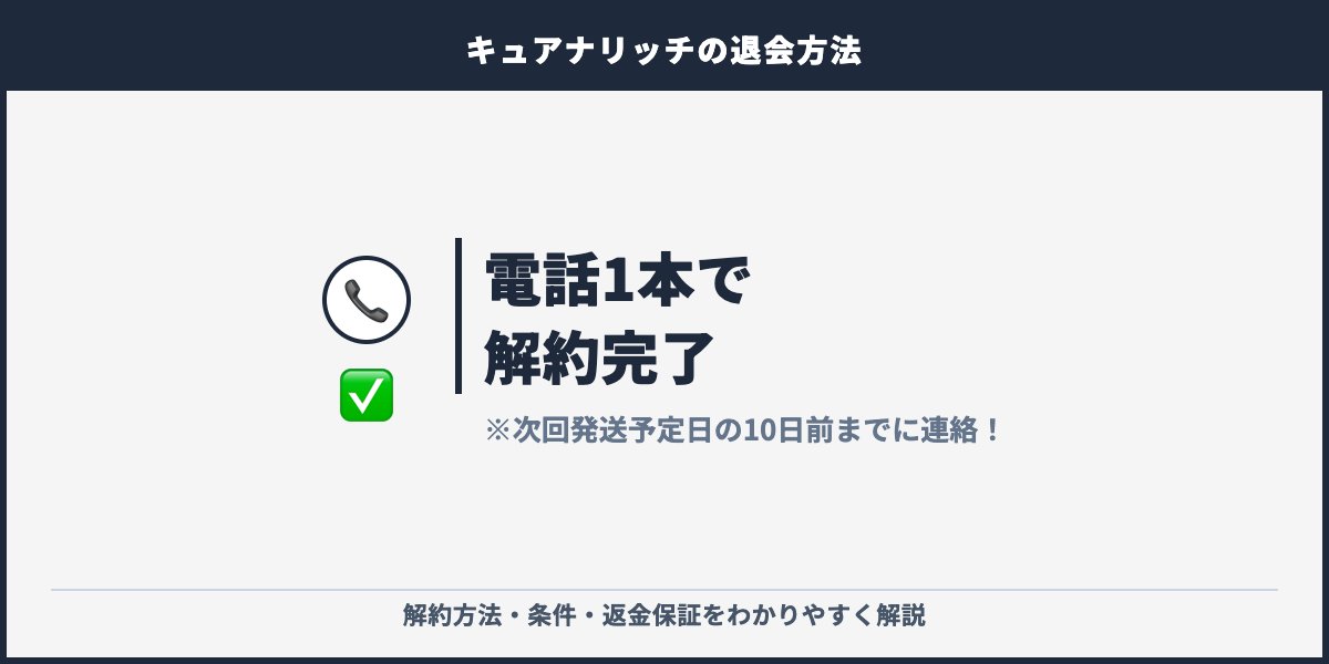 電話(0120-8993-17)なら即日解約完了、メールだと数日かかる場合があります。回数縛りなしで初回受取後でも解約OK。90日間の返金保証もあるので安心です。