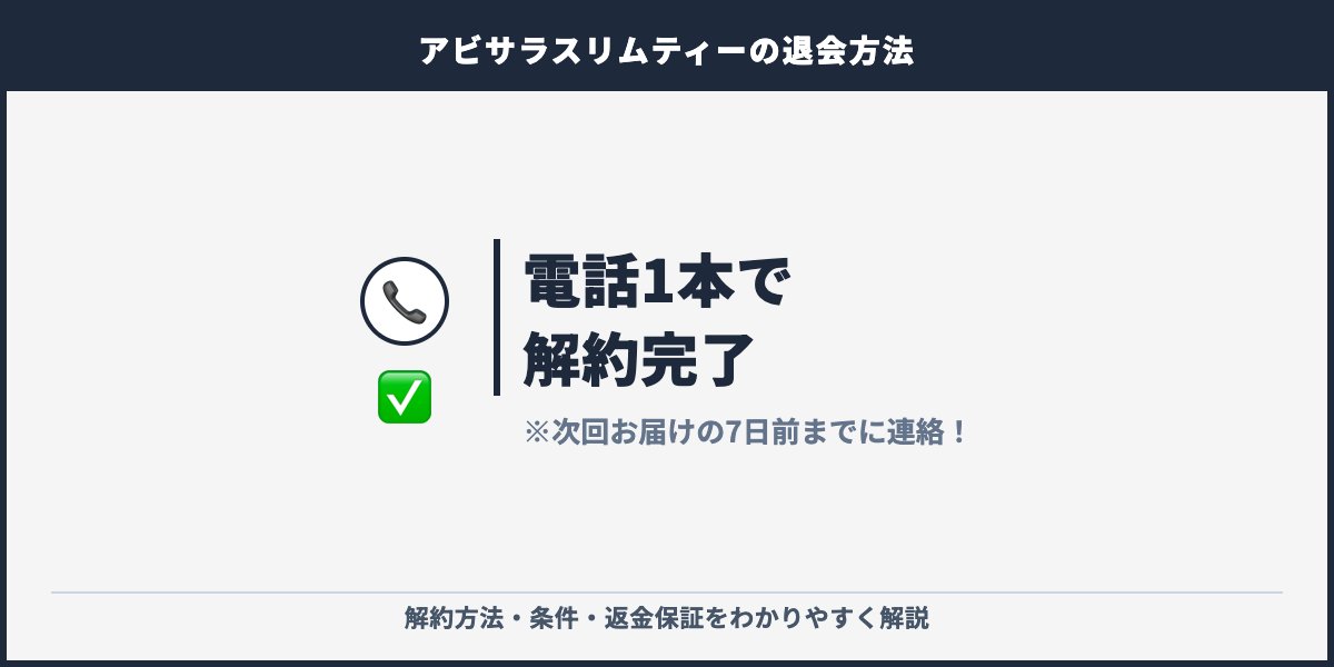 アビサラスリムティー退会方法|定期お得便解約・7日前連絡・全額返金保証【2026年最新】